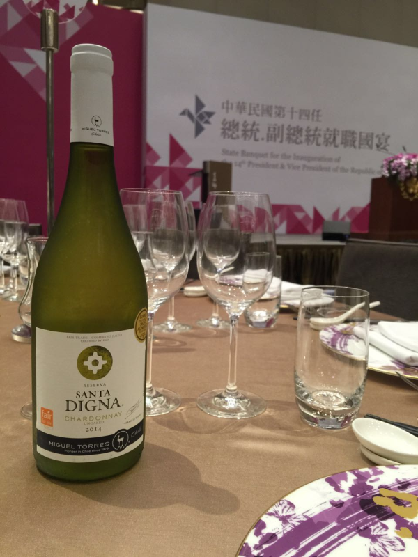 La cena del tradicional banquete de estado con motivo de la investidura de la presidenta electa de Taiwán, Tsai Ying-wen, incluyó excepcionalmente un vino chileno. Los invitados brindaron con Santa Digna Chardonnay de Miguel Torres.